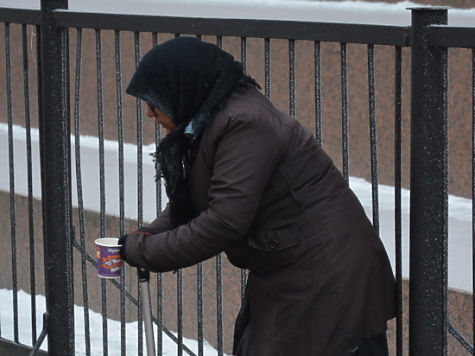 Нищая у касс: «Мало подают, ой, мало. Холодно, ой, холодно. До шести стою. Если не прогонят. Менты не берут денег, даем — не берут. Гонят. А вы кто такие?» (Наклоняется к черному мешочку за спиной, достает мобильник и кому-то в спешке набирает.)